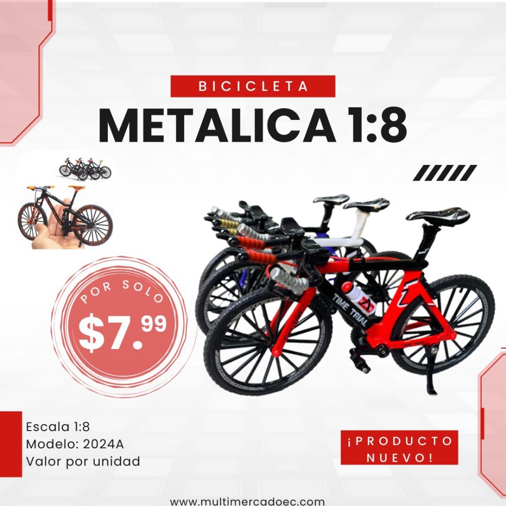 La Bicicleta Metálica de Colección Modelo 2024A de Multimercado EC es una pieza imprescindible para cualquier estantería o escritorio. Este modelo específico recrea las bicicletas de contrarreloj (Time Trial) con una precisión asombrosa, destacando por su cuadro aerodinámico y sus colores deportivos de alto impacto.