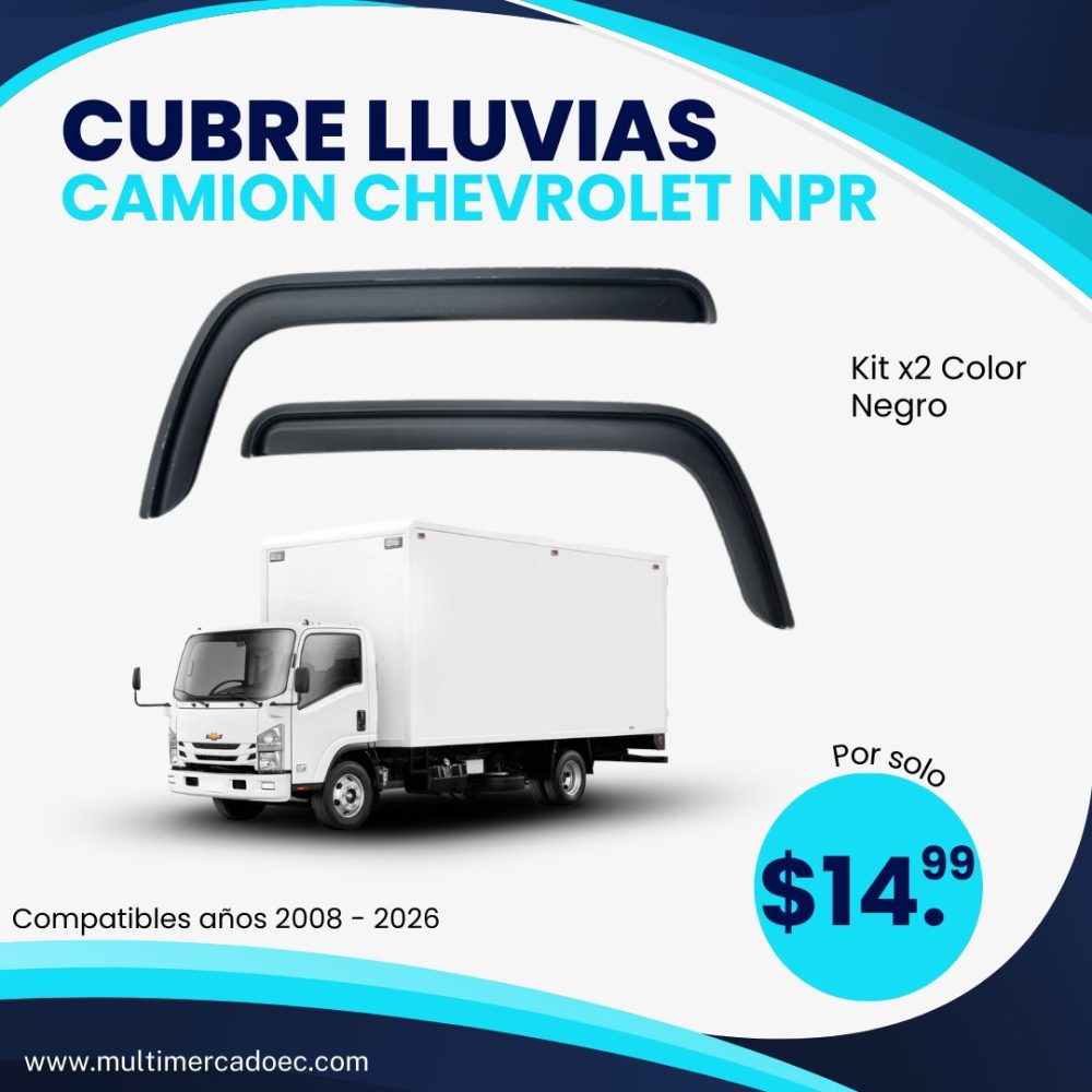 En Multimercado EC entendemos que tu camión es tu herramienta de trabajo. Por eso, te ofrecemos estos Cubre Lluvias para Chevrolet NPR, fabricados con polímeros de alta calidad que resisten la exposición solar y los impactos del camino, manteniendo su color y forma con el paso del tiempo.