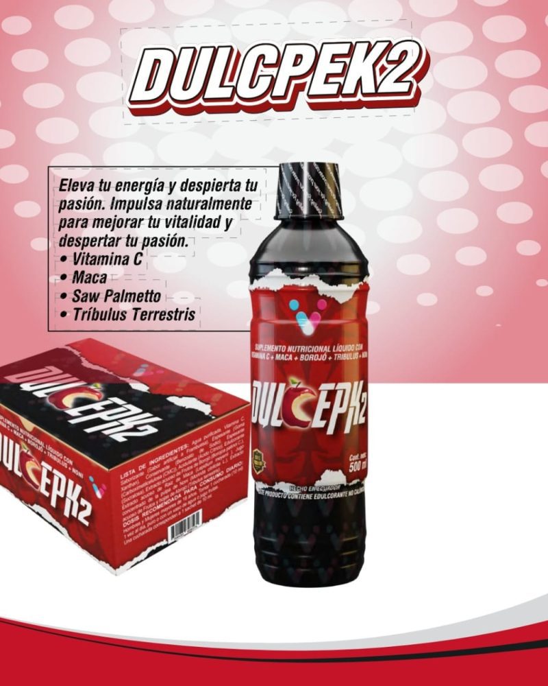 En Multimercado EC traemos soluciones que potencian tu seguridad y placer. Dulcpek2 es un potente vigorizante líquido que utiliza una mezcla de superalimentos y extractos naturales para mejorar la circulación y el flujo sanguíneo hacia la zona íntima. Esto se traduce en una respuesta más firme, mayor sensibilidad y una energía inagotable para disfrutar al máximo.