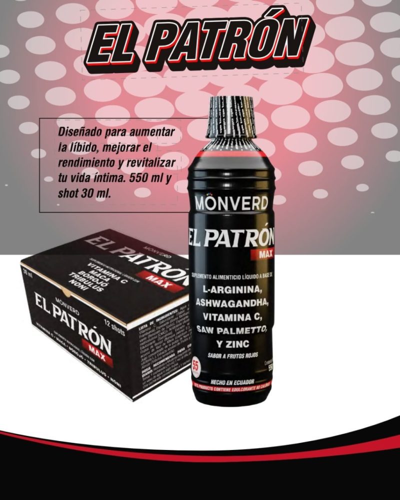 🔥🦅 ¡Toma el control y demuestra quién manda! El Patrón MAX es el suplemento natural avanzado diseñado para quienes no se conforman y buscan un rendimiento máximo. Con una fórmula explosiva que combina L-Arginina, Maca y Borojó, este vigorizante te brinda energía inmediata y una potencia íntima inigualable para que cada encuentro sea legendario.