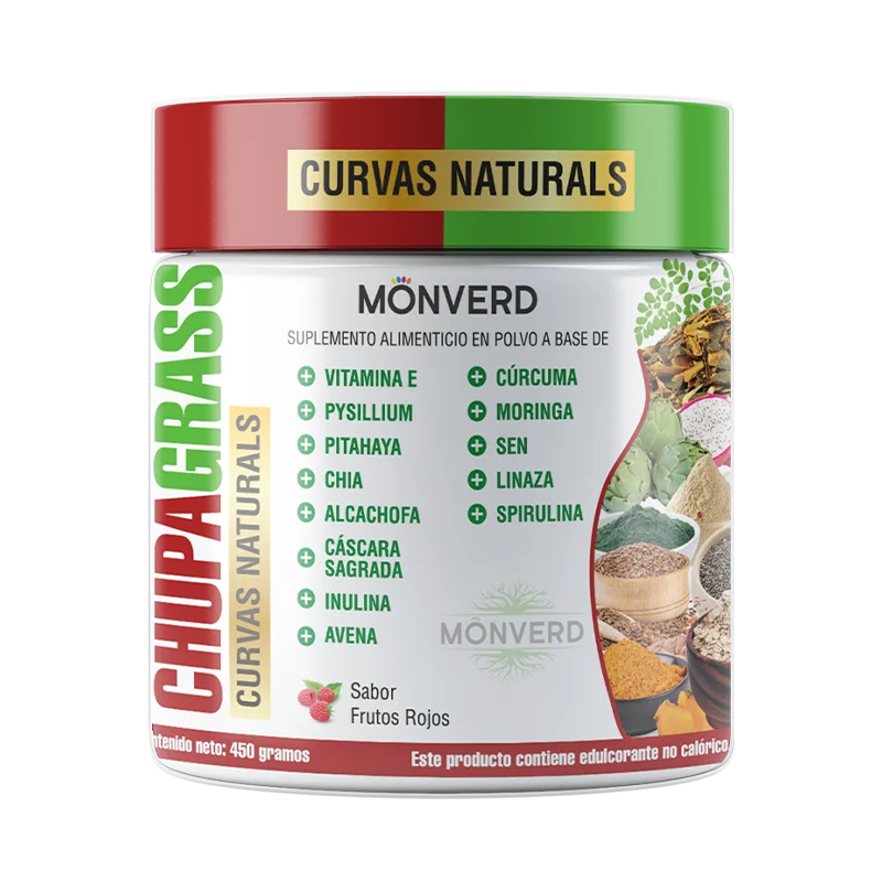 🌿🍓 ¡Tu aliado perfecto para alcanzar tu peso ideal de forma natural! La Fibra Chupagrass de Monverd es una potente mezcla de 13 ingredientes naturales diseñada para desintoxicar tu cuerpo y mejorar tu digestión. Con un delicioso sabor a frutos rojos y endulzada con estevia, es la solución definitiva contra la pesadez y el tránsito lento.