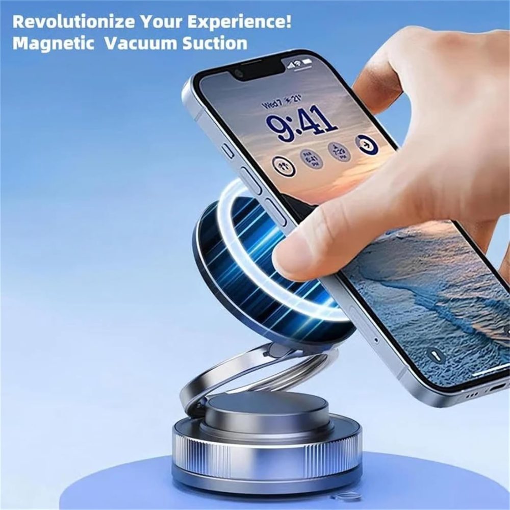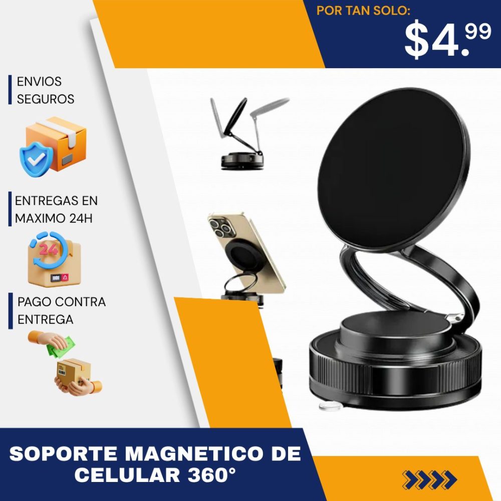 Olvida los soportes estorbosos que tapan la rejilla del aire acondicionado. Nuestro Soporte Magnético 360° está diseñado para adherirse firmemente al tablero de tu auto, brindándote una estabilidad superior incluso en caminos irregulares o frenadas bruscas.